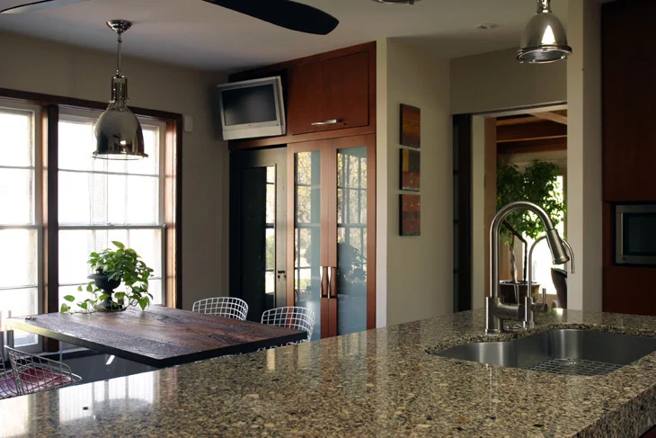 No longer simply a room in which to prepare food, the kitchen has become the center of the universe. It has transformed into a relaxed meeting space where family, friends congregate to socialize and cook together, or where children do their homework. The walls have come down, literally, so that the food prep, dining and lounge spaces integrate into one convivial, home and entertainment environment.